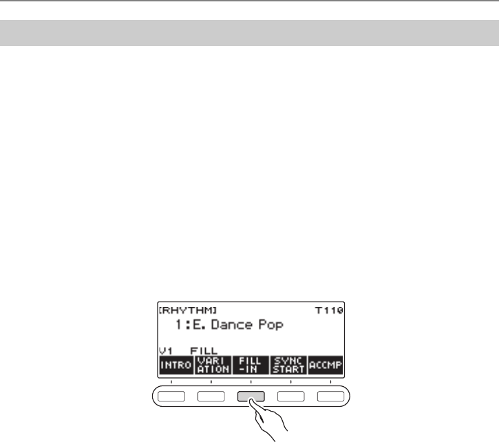 • Drücken der FILL-IN-Taste bei gestopptem Rhythmus fügt das Fill-In ein und lässt es abspielen,