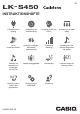 Referens Tekniska data för produkten Modell LK-S450 Tangentbord 61 tangenter Anslagskänslighet 3 typer, av Klaviaturbelysning Maximalt antal tangenter tända samtidigt: 10, kan avaktiveras Maximal polyfoni 48 noter Toner Förinställda toner Övrigt 600 Skiktning, delning, uthållning Effekter Efterklang (20 typer, av); Kör (10 typer, ton); DSP (inbyggt i vissa toner) Mastereffekter Equalizer (10 förinställningar) Aktiva effekter Equalizer för volymsynkronisering, surround Effekter för extern