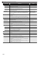 Édition d’événements Enregistreur MIDI Nom de l’événement D.Dst Wah Depth Nom du paramètre DSP Distortion Wah Depth Réglages Séquenceur de motifs Pads Piste système Pistes 01 à 16 –64 à +63 O O O Phrase D.Dst Wah Manual DSP Distortion Wah Manual 000 à 127 O O O D.