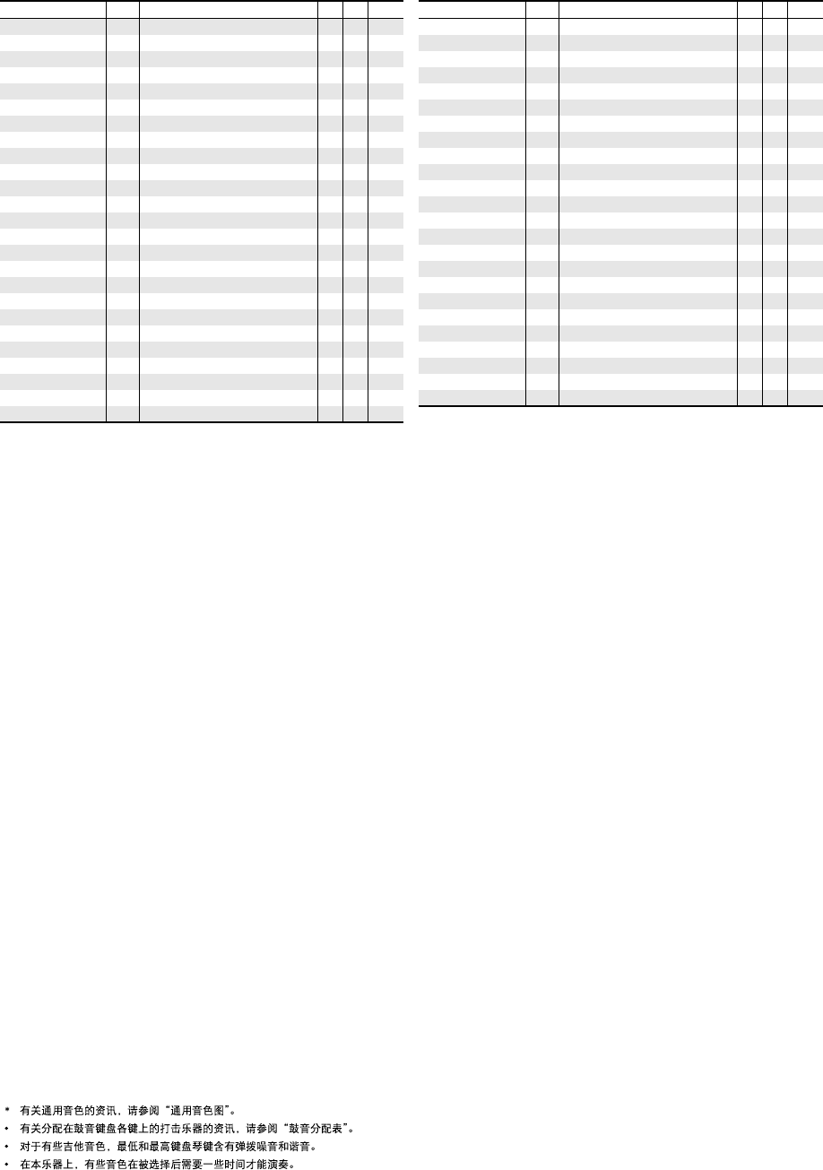 • Vi hänvisar till ”Trumtilldelningslista” angående detaljer kring de slagverksinstrument som tilldelats varje tangent på trumljudstangentbordet.