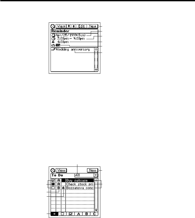 Il tocco di Esc consente di ritornare alla schermata della lista Reminder.