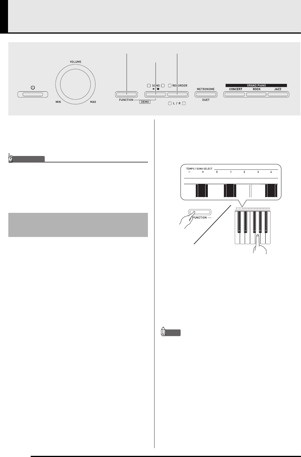 • Each press of the + or – key raises or lowers the song