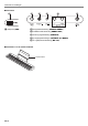 Overzicht en instellingen Algemene gids ■ Voorpaneel 1 2 3 4 5 6 7 8 9 *1 A0 C1 C2 C3 C4 C5 C6 C7 C8 *2 Voorkant bk 1 P (aan/uit) toets 6 a toets 2 Volumeknop 7 0 (opname) toets 3 Functietoets (FUNCTION) 8 Vleugeltoets (GRAND PIANO) 4 Geluidsmodustoets (SOUND MODE) 9 Elektrische pianotoets (ELEC.