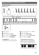 Действия, общие для всех режимов ■ Действия одной сенсорной кнопкой Плотное касание кнопки с немедленным ее отпусканием обеспечивает выполнение присвоенного ей действия. Так, при касании кнопки 9 ELEC. PIANO происходит задание тембра «ELEC.PIANO», при касании кнопки 5 METRONOME — включение (или остановка) метронома. ■ Сочетания «сенсорная кнопка + клавиша клавиатуры» C C2 C3 C4 C5 C6 C7 При выполнении действия сенсорной кнопкой в сочетании с клавишей клавиатуры (стр.