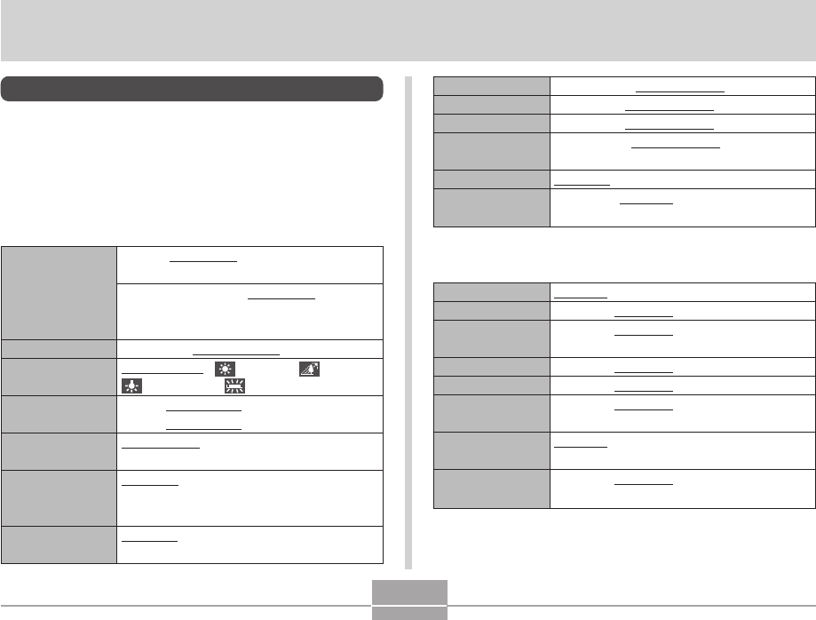 本節中的各表介紹出現在各拍攝方式及顯示方式