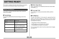 GETTING READY ● Menu Screen Operations 3. Press [ ] or [ ] to select the tab you want, When you want to do this: Do this: Move between tabs Press [ ] and [ ]. Move from the tab to the settings Press [ ]. Move from the settings to the tab Press [ ]. Move between the settings Press [ ] and [ ]. Display the options available for a setting Press [ ] or press [SET]. Select an option Press [ ] and [ ]. Register an option selection and exit the menu screen Press [SET].