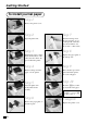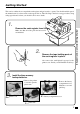 Getting Started 3. Install the three memory backup batteries. (continued…) 3. Note the (+) and (–) markings in the battery compartment. Load a set of three new SUM3 (UM-3) batteries so that their positive (+) and negative (–) ends are facing as indicated by the markings. 4. Replace the battery compartment cover. 5. Close the platen arm and replace the printer cover.