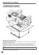User Maintenance and Options To replace receipt paper Step 1 Set the mode switch to the REG position and remove the printer cover. CAL X REG Z OFF RF PGM Step 2 Open the platen arm. Step 3 Remove the old paper roll from the cash register. Step 4 Load new paper. Go to the step 3 described on page 9 of this manual. NOTE: After completion of register programming, enter 6200 and s in the PGM 3 mode (PGM mode ⇒ 3s) to backup the program data into the internal non-volatile memory.