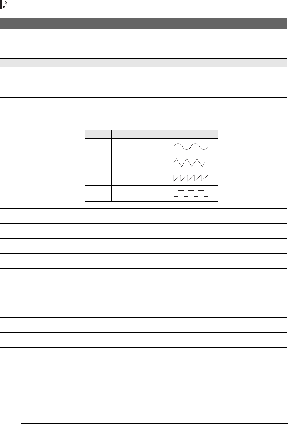 The table below shows the parameters that can be configured on the tone editor screen. For information about each parameter,