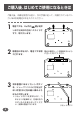 ご購入後、はじめてご使用になるときは ご購入後、本機を使用する前に、次の手順に従って、同梱されているアル カリ単4形乾電池2本を入れてください。 1 電池ブタを、2ヵ所の 部分を押 しながら矢印の方向へスライドさ せて、取り外します。 2 乾電池2本を入れ、電池ブタを取 電池の極性(+−)を間違えないよう 3 本体裏面にあるリセットボタン り付けます。 に正しく入れてください。 を、シャープペンシル(芯を出さ ない状態)など先の細い棒のよう なもので押します。 ※ リセットボタンを押すものに、つ まようじや鉛筆など、先端の折れ やすいものを使わないでくださ い。故障の原因になります。 6 リセットボタン