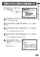 5 本体裏面にあるリセットボタン を、シャープペンシル (芯を出さ ない状態) など先の細い棒のよう こ ん な と き は なもので押します。 VOL ※ リセットボタンを押すものに、 つまようじや鉛筆など、先端の 折れやすいものを使わないでく ださい。故障の原因になりま す。 6 中央部分に指をかけて、本機を 7 コントラスト設定画面が表示され リセットボタン 開けます。 ます。 必要に応じて、<または,を押 して、明るさを調整します。 8 Cを押します。 メニュー画面が表示されます。 317