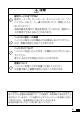 警告 煙、臭い、発熱などの異常について 煙が出ている、へんな臭いがする、発熱しているなどの 異常状態のまま使用しないでください。そのまま使用す ると、火災・感電の原因となります。すぐに次の処置を行っ てください。 1. 電源スイッチを切る。 2. USBケーブルをはずす。 3.