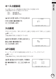 設 定 変 更 キー入力音設定 キーを押したとき、音を鳴らすか鳴らさないかを設定します。 工場出荷時は「OFF」に設定されています。 ・ ON ・・・・ 音を鳴らす ・ OFF ・・・ 音を鳴らさない > または. を押して「O N 」または 「OFF」の横に●を移動させ、 Cを押します。 入力設定 文字の入力方法を、「挿入」または「上書き」に設定します(「挿入」と「上書き」 47ページ)。 工場出荷時は「挿入」に設定されています。 >または.を押して「挿入」 または「上 書き」の横に●を移動させ、 Cを押します。 APO設定 オートパワーオフまでの時間を設定します(オートパワーオフについて 25ページ)。 工場出荷時は「6分」 (約6分間)に設定されています。 >.
