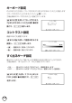 キーボード設定 ひらがなの入力方法を、 「ローマ字かな入力」 または 「かなめくり入力」 に設定します (「ローマ字かな入力」と「かなめくり入力」 39ページ)。 工場出荷時は「ローマ字かな入力」に設定されています。 >または.を押して 「ローマ字かな入 力」 または 「かなめくり入力」 の横に●を移 動させ、Cを押します。 コントラスト設定 画面の明るさを調整できます。 <または,を押して画面の明るさを 調整し、Cを押します。 • < ・・・ 画面は淡く(明るく)なります。 • , ・・・ 画面は濃く(暗く)なります。 すぐ出るサーチ設定 読みやスペルを入力して調べるときの検索方法を切り替えることができます。 工場出荷時は、「すぐ出るサーチ ON」に設定されています。 • ON ・・・・・・ 読みやスペルを入力するごとに、候補を表示します。 • OFF ・・・・・ 読みやスペルをすべて入力してから、検索します(一括検索)。 > または.