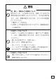 警告 煙、臭い、発熱などの異常について 煙が出ている、へんな臭いがする、発熱しているなどの 異常状態のまま使用しないでください。そのまま使用す ると、火災・感電の原因となります。すぐに次の処置を 行ってください。 1. 電源スイッチを切る。 2.