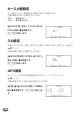 キー入力音設定 キーを押したとき、音を鳴らすか鳴らさないかを設定します。 工場出荷時は「OFF」に設定されています。 • ON ・・・・ 音を鳴らす • OFF ・・・ 音を鳴らさない > または. を押して「O N 」または 「OFF」の横に●を移動させ、 Cを押します。 入力設定 文字の入力方法を、「挿入」または「上書き」に設定します(「挿入」と「上書き」 47ページ)。 工場出荷時は「挿入」に設定されています。 >または.を押して「挿入」 または「上 書き」の横に●を移動させ、 Cを押します。 APO設定 オートパワーオフまでの時間を設定します(オートパワーオフについて 25ページ)。 工場出荷時は「6分」 (約6分間)に設定されています。 >.