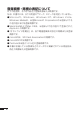 注意 USBケーブルについて USBケーブルは使いかたを誤ると、火災・感電の原因と なることがあります。次のことは必ずお守りください。 ストーブ等の熱器具に近づけない プラグを抜くときは、ケーブルを引っ張らない( 必ず USBケーブルのプラグを持って抜く) USBケーブルのプラグはコネクターの奥まで確実に差 し込む 旅行などで長期間使用しないときは、USBケーブルの プラグをコネクターから抜く ● ● ● ● 電池について 電池は使いかたを誤ると液もれによる周囲の汚損や、破 裂による火災・けがの原因となることがあります。次のこ とは必ずお守りください。 本機で指定されている電池以外は使用しない ● ● 長時間使用しないときは、本機から電池を取り出してお く USBケーブル接続コネクター部への接続 コネクター部には、付属品以外のものを接続しないでく ださい。火災、感電の原因となることがあります。 重いものを置かない 本機の上に重いものを置かないでください。バランスが くずれて倒れたり、落下してけがの原因となることがあり ます。 3