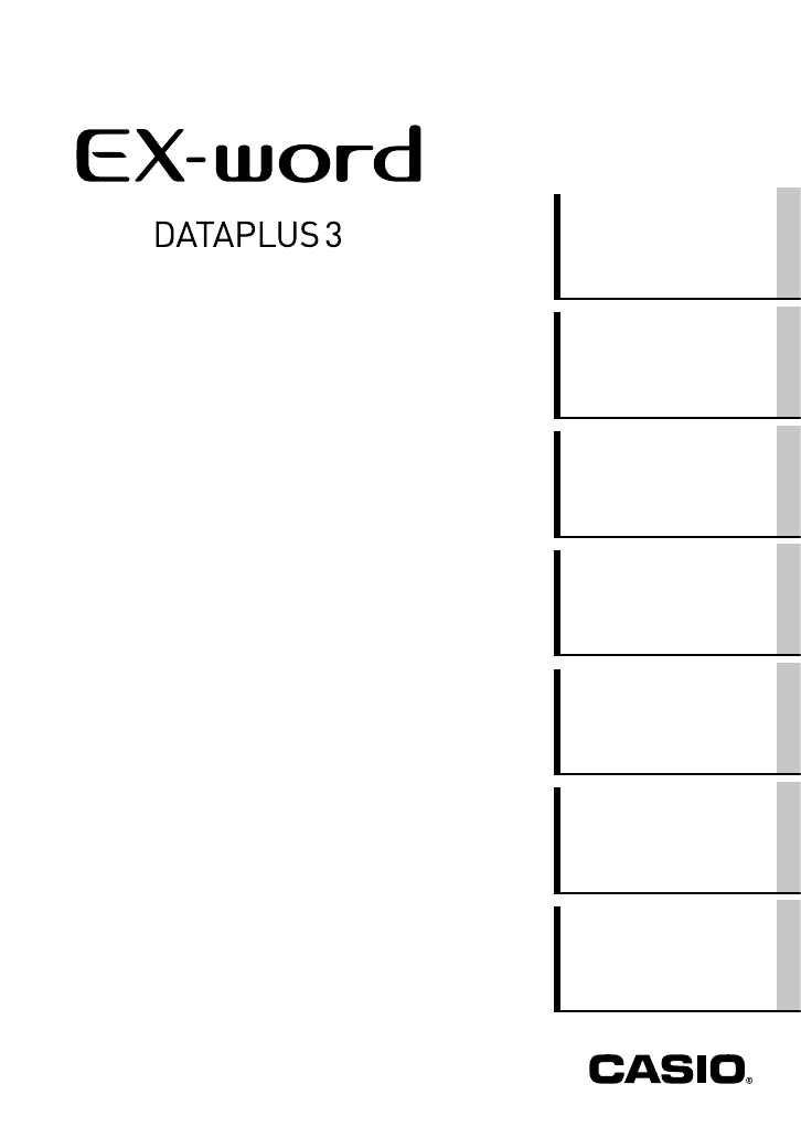 本機をご使用になる前に この説明書の使いかた この説明書は、電子辞書ははじめてという方から、すでにCASIOの別の 電子辞書を使ったことがある方まで、すべての方に本機を使いこなして いただけるように作られています。以下の図を参考にしてください。 本書の用語はさくいん( 269 ページ)で説明のあるページを調べる ことができます。 ● 電子辞書を使ったことが CASIO の電子辞書を ある 使ったことがある ▼ ▼ ▼ 準備をします:本機をご使用になる前に(10 ページ) ▼ ▼ 主なキーの働きや、画面に表示されるマークの 意味を調べておきます: 各部のなまえとはたらき(22ページ) ▼ ▼ 本機の使いかたの練習をします: 基本的な操作を覚えよう(30 ページ) ▼ さらに、便利なキーの確認をし ます: を押せば、 ひとつ前の画面へ(70 ページ) よく使う辞典は辞典/モード キーで一発表示(71ページ) ▼ ▼ ▼ どの辞典を使うか決まったら ▼ ▼ ▼ 使う辞典の説明を読みます: 収録辞典の使いかた(165 ページ) それぞれの辞典について、検索のしかたのヒントになる情報が記載されています。 ▼ ▼ ▼