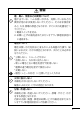 安全上のご注意 保証規定 安全上のご注意 1. 保証期間内に取扱説明書に従った正常な使用状態で故障した場合には、無料修 理いたします。 このたびは本機をお買い上げいただきまして、誠にありがとう ございます。 ご使用になる前に、この「安全上のご注意」をよくお読みの上、 正しくお使いください。 危険 この表示を無視して誤った取り扱いをすると、人 が死亡または重傷を負う危険が差し迫って生じる ことが想定される内容を示しています。 警告 この表示を無視して誤った取り扱いをすると、人 が死亡または重傷を負う危険が想定される内容を 示しています。 注意 この表示を無視して誤った取り扱いをすると、人 が傷害を負う危険が想定される内容および物的損 害のみの発生が想定される内容を示しています。 絵表示の例 記号は「してはいけないこと」を意味しています(左の例 は分解禁止)。 ●記号は「しなければならないこと」を意味しています。 危険 2.