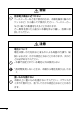 警告 煙、臭い、発熱などの異常について 煙が出ている、へんな臭いがする、発熱しているなどの 異常状態のまま使用しないでください。そのまま使用す ると、火災・感電の原因となります。すぐに次の処置を行っ てください。 1. 電源スイッチを切る。 2.