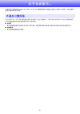 无线 LAN 连接的疑难排解 在无线 LAN连接上出现问题时请检查以下各点。 投影机与一台电脑之间的无线LAN连接 问题 原因及所需要的对策 [Reconnect] 一直出现在 Wireless Connection 3 窗口 中,电脑与投影机连接不 上。 z 若电脑上还有 Wireless Connection 3 以外的其他无线 LAN 软件正在运行,请将其关闭。 z 若投影机与电脑间的距离过远或其间有墙或一些其他障碍物,则缩短距离及 / 或移除障 碍物。 z 若附近有微波炉、蓝牙装置或其他干扰无线 LAN 信号的装置,请将其移开。 z 若投影机未开机,则打开其电源。 z 若投影机未安装无线适配器,则进行安装(第 39 页)。 z 若电脑的无线 LAN 功能未开启,则启用该功能。 投影机与电脑间的无线 LAN 连接总是断掉。 z 若电脑上还有 Wireless Connection 3 以外的其他无线 LAN 软件正在运行,请将其关闭。 z 若投影机与电脑间的距离过远或其间有墙或一些其他障碍物,则缩短距离及 / 或移除障 碍物。 z 若附近有微波炉、蓝牙装置或其他干扰无线 LAN 信号的装置,