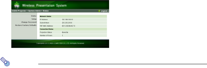 z Vous vous connectez à la page Admin Système et l’écran d’état apparaît.