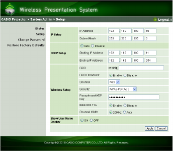 - Pour établir une connexion LAN sans fil entre le projecteur et un ordinateur après le réglage des paramètres de sécurité