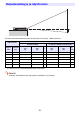 Seuraava taulukko esittää etäisyyden ja heijastetun kuvan koon suhdetta toisiinsa.