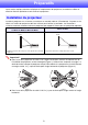 Précautions concernant l’installation z Branchez le cordon d’alimentation sur une prise facile d’accès, pour pouvoir le débrancher rapidement, si nécessaire. z Ne posez aucun objet à moins de 30 cm du projecteur. Faites particulièrement attention de ne poser aucun objet devant les entrées et sorties d’air. z L’air d’un climatiseur peut disperser la chaleur sortant des évents autour de l’objectif du projecteur de telle sorte que des ondulations de chaleur apparaissent sur l’image projetée.