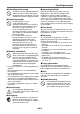 Forsiktighetsregler ● Avhending ved brenning - ● Utpumpingsluftehull Forsøk aldri å kvitte deg med projektoren ved å brenne den. Dersom dette gjøres, kan det forårsake en eksplosjon, noe som medfører fare for brann og personskade. ● Projektorlysutslipp - • Se aldri direkte inn i linsen, inntaksluftehullene eller utpumpingsluftehullene mens lampen er tent. Når du slår på projektoren, må du kontrollere at ingen ser direkte inn i linsen, inntaksluftehullene eller utpumpingsluftehullene.