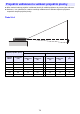 Následující tabulka znázorňuje vztah mezi vzdáleností a velikostí promítaného obrazu.