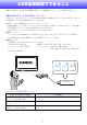 本機とマルチプロジェクションカメラを接続して書類の投映を行うには 1. 本機の電源を入れる。 本機のPOWER/STANDBYインジケーターが緑色に点灯するまでお待ちください。 2. マルチプロジェクションカメラと本機を、マルチプロジェクションカメラに付属の USBケーブルで接続する。 YC-400/YC-430/YC-470 カメラ カメラスタンド USBケーブル 書画台 3.