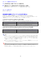 設定項目名 機器設定1の 初期化 入力 設定単位 R C V H D W U N 単一 解説 機器設定1メインメニュー内のすべてのサブメニュー項目の設定を、初 期状態に戻します。 言語の設定および変更したパスワードは初期化されません。 設定項目の「自動調整」は、 入力ソースとしてRGB入力が選択されて いる場合に限り、初期化の対象となります。その他の各設定項目につ いては、選択されている入力ソースとは無関係にすべて初期化され ます。 機器設定2メインメニュー 設定項目名 ズーム メモリー 入力 設定単位 R C V H D W U N 単一 解説 [P](電源)キーを押して電源を切ったときのズーム設定(投映サイズ) を記憶しておき、次回電源を入れたときに、記憶している投映サイズに 戻る機能です。 オン*: 電源を入れると、前回[P](電源)キーを押して電源を切ったときの 投映サイズに自動的に戻ります。 オフ: 電源を入れると、投映サイズは最大に設定されます。 ʫʬ [P](電源)キーを押さずに電源コードをコンセントから抜いて、 本機の電源を切った場合は、その時点でのズーム設定は記