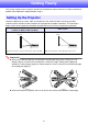 Setup Precautions z Use a conveniently located power outlet that you can reach easily when you need to unplug the projector. z Do not located any objected within 30 cm (11.8 inches) around the projector. Particular care is required to keep objects away from projector air intake and exhaust openings. z Airflow from air conditioning equipment can blow the heat being exhausted from the area around the projector’s lens in a way that causes heat ripples to appear in the projected image.