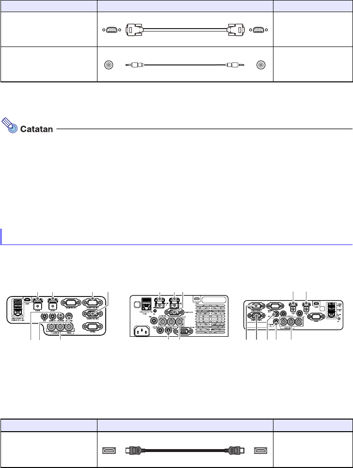 Dengan sambungan jenis ini, sambungkan ke HDMI, video komponen, atau terminal video komposit