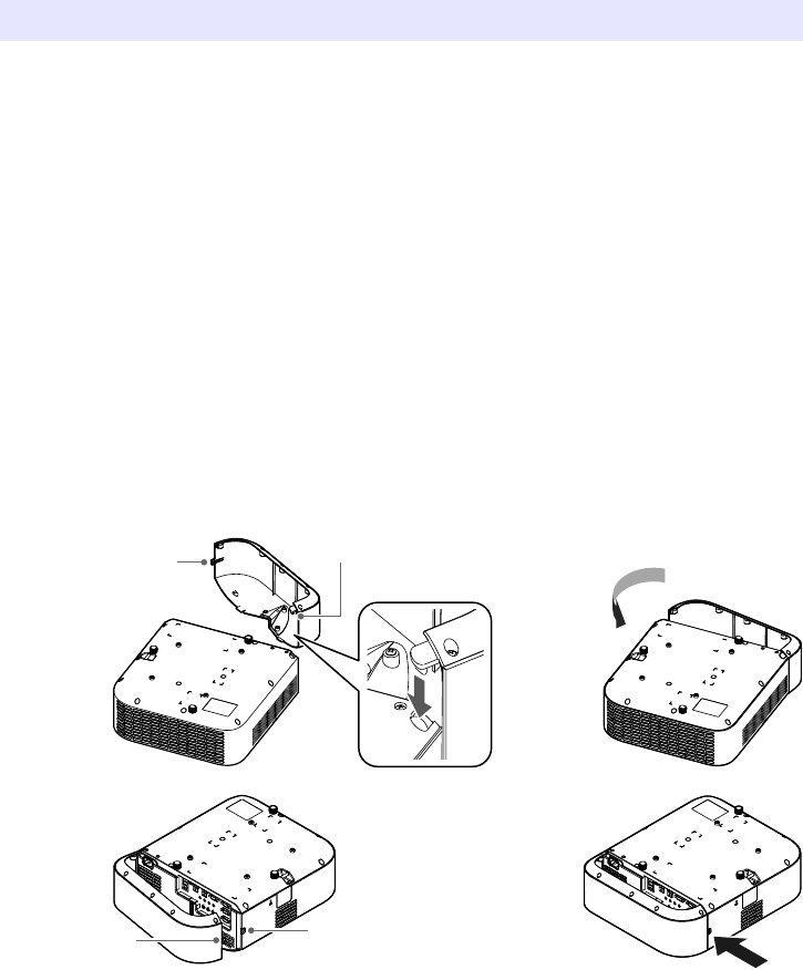 Sebelum memasang atau melepas penutup kabel, matikan proyektor dan cabut colokan dayanya dari