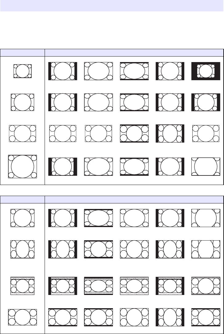 Berikut ini ditunjukkan bagaimana gambar diproyeksikan sesuai dengan jenis sinyal input dan