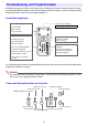 Anschließen an einen Komponenten-Videoausgang Videogerät Projektor Komponenten-Videokabel (im Fachhandel erhältlich) Anschluss COMPUTER IN 1 Anschluss AUDIO IN 1 An KomponentenvideoAusgangsbuchsen An AUDIO-Ausgang Anschluss COMPUTER IN 2 Weiß Anschluss AUDIO IN 2 Rot Stereo-MinisteckerÙ Audiokabel mit Cinch-Steckern (im Fachhandel erhältlich) z Die Komponentenvideo-Ausgänge umfassen drei Buchsen: Y·Cb·Cr oder Y·Pb·Pr.