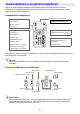 Liitäntä komponenttivideolähtöön Projektori Videolaite Komponenttivideokaapeli (saatavana alan liikkeistä) COMPUTER IN 1 -liitäntä AUDIO IN 1 -liitäntä Komponenttivideon lähtöliitäntöihin Äänen lähtöliitäntöihin COMPUTER IN 2 -liitäntä Valkoinen Punainen AUDIO IN 2 -liitäntä Stereominipistoke Ù Banaanipistokkeellinen äänikaapeli (saatavana alan liikkeistä) z Komponenttivideon lähtöliitännät ovat kolmen liitännän sarjoissa: Y·Cb·Cr tai Y·Pb·Pr.
