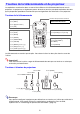 Raccordement à une sortie vidéo à composantes Projecteur Appareil vidéo Câble vidéo à composantes (en vente dans le commerce) Prise COMPUTER IN 1 Prise AUDIO IN 1 A la borne de sortie vidéo à composantes Aux bornes de sortie audio Prise COMPUTER IN 2 Blanc Rouge Prise AUDIO IN 2 Minijack stéréo Ù Câble audio de type RCA (en vente dans le commerce) z Les bornes de sortie vidéo à composantes se présentent sous forme de jeux à 3 bornes : Y·Cb·Cr ou Y·Pb·Pr.