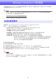 无线 LAN 连接的疑难排解 在无线 LAN连接上出现问题时请检查以下各点。 投影机与一台电脑之间的无线LAN连接 问题 原因及所需要的对策 [Reconnect] 一直出现在 Wireless Connection 3 窗口 中,电脑与投影机连接不 上。 z 若电脑上还有 Wireless Connection 3 以外的其他无线 LAN 软件正在运行,请将其关闭。 z 若投影机与电脑间的距离过远或其间有墙或一些其他障碍物,则缩短距离及 / 或移除障 碍物。 z 若附近有微波炉、Bluetooth 装置或其他干扰无线 LAN 信号的装置,请将其移开。 z 若投影机未开机,则打开其电源。 z 如果投影机上未连接无线适配器,则进行连接(第 13 页)。 z 若电脑的无线 LAN 功能未开启,则启用该功能。 z 检查并确认电脑的无线 LAN 功能(内置的或外接的无线适配器)满足“系统的最低要 求”一节(第 9 页)中“无线 LAN” 所述条件。 如果这些条件不满足,连接将无法成功。 投影机与电脑间的无线 LAN 连接总是断掉。 z 若电脑上还有 Wireless Connection 3 以外的其他无