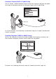 To connect the document camera to the Data Projector and project the image of a document 1 Turn on the Data Projector. 2 Connect the document camera to the Data Projector using the USB cable that comes bundled with the document camera. Wait until the Data Projector’s POWER/STANDBY indicator is lit green. YC-400/YC-430 Camera Camera stand USB cable Document stage 3 With nothing on the document stage, press the [ camera stand.