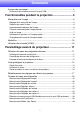 Sommaire A propos de ce manuel... .................................................................................. 4 Utilisateurs des modèles pourvus d’un port USB......................................................... 4 Fonctionnalités pendant la projection .......................... 5 Manipulation de l’image .................................................................................... 5 Réglage de la luminosité de l’image ........................................................................