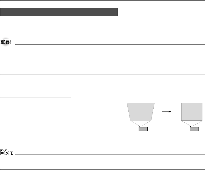 z 横方向の台形歪みは補正できません。本機の投映レンズの中心とスクリーンの左右方向の中央位置