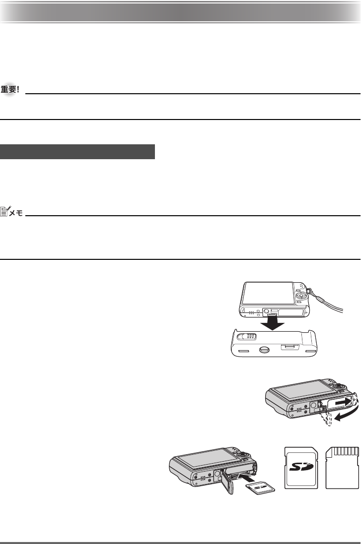 z 軽く押しながら矢印の方向にスライドしてカバーを開けます。