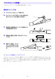 第4章: トラブルシューティング インタラクティブホワイトボードの使用中に何らかの問題が発生した場合は、 以下をご確認ください。 デジタルペンおよびドットスクリーン関連 ドットスクリーンやドットパターン付き資料にデジタルペンが反応しない 考えられる原因 対処 デジタルペンの電池が消耗してい る。 電池を新しいものに交換します。 デジタルペンの電源が切れてい る。 z デジタルペンを持つときに、キャッ プの装着状態を検出するスイッチ (電源スイッチの働きをします)を指 で押さえてしまうと、デジタルペン の電源が切れます。検出スイッチを 離すとデジタルペンの電源が入り、 動作します。 z デジタルペンのキャップを外したままで約7分30秒の間使用しないと、自動 的に電源が切れます。使用せずに放置していたデジタルペンが動作しなく なった場合は一度キャップを閉じてから、キャップを外してください。 デジタルペン先端部のレンズを指 などでふさいでいる。 デジタルペンは、内蔵のカメラで対象を認識しており、先端部(ペン先の下部) のレンズを指などでふさいでいると正しく動作しません。レンズを何らかの障 害物で
