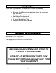 Table of Contents Safety Notification…………………... Page 1 Machine Parts Inventory..…..………. Page 2 Machine Requirements……………… Page 2 Setting Up…………………………… Page 3-5 Operating Instructions……………… Page 6-7 Machine Adjustments………………. Page 8-11 Definition and Description of Parts… Page 12-14 Maintenance ……………………….. Page 15 Troubleshooting…………………….