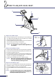 4 Adjust the saddle angle. • Loosen the bolt of the seat pillar using the wrench provided. • Adjust the saddle to the desired angle. • Tighten the bolt of the seat pillar, fixing the angle of the saddle as desired. Seat pillar Wrench Adjust the pedal belt. 5 • The pedal belt length of the EC-C400 can be adjusted according to your shoes size. 6 The level knobs • Ideally, you should only use your exerciser on a hard, level floor.