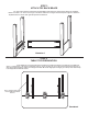 STEP 3 ATTACH TOP BACK BRACE You may find it easiest to attach the Top Back Brace and shelves by inverting the island.The Top Back Brace is located 1 1/4” down on the legs. This allows clearance for hinges and the drop leaf supports. Attach the Top Back Brace to the left and right side panels with bastions. Illustration 3 STEP 4 TABLE TOP PREPARATION Invert Table Top on smooth flat surface.