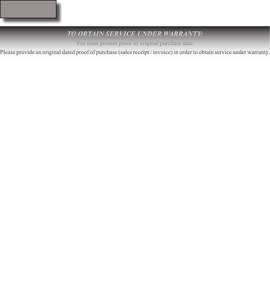 TO OBTAIN SERVICE UNDER WARRANTY: